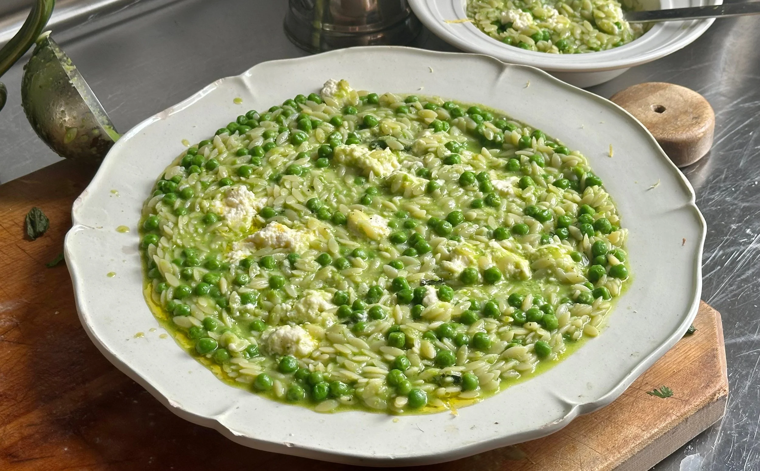 There is no dish that captures the transition of the season quite like Risi e Bisi. Historically, this was the dish served to the Doge of Venice on St. Mark's Day (April 25th) to celebrate the feast of the city's patron saint and the bounty of the spring harvest. Neither a soup nor a true risotto, its consistency should be all'onda (wavy) meaning it should flow slightly when the plate is tilted. Where a risotto is stirred to a creamy, firm finish that holds its shape on the plate, Risi e Bisi is meant to be looser and more spoonable, closer to a brothy embrace than a structured mound.